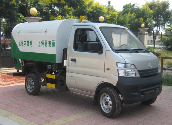 勾臂式垃圾车又称车厢可卸式垃圾车。上装部分由:拉臂主油缸、附车架、翻转架、支撑腿(选装)、锁紧架、锁紧油缸及多路换向阀等组成。一车可配备多个垃圾箱(分为船形斗、方形斗,),实现与多个地点的垃圾斗联合作业。垃圾斗后盖为可向上打开的活动门,并用4个锁紧栓锁紧防止在垃圾运输过程中垃圾厢内的垃圾撒在路面上造成打开锁紧栓可将厢内垃圾一次性自卸出来,完全液压操作,使用方便,操作简单。